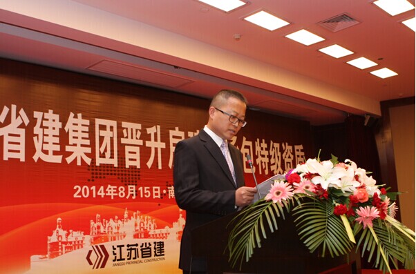省住建廳副廳長徐學軍祝賀江蘇省建申特夢想成為現實。他說,省建申特一舉成功,在全省率先取得新一輪特級資質,值得全省建筑業(yè)慶賀,而省建的歷史將翻開新的一頁。他希望江蘇省建集團吃透中央城鎮(zhèn)化會議精神,抓住這難得的發(fā)展機遇,繼續(xù)堅持人才戰(zhàn)略、管理現代化戰(zhàn)略、質量興業(yè)戰(zhàn)略和品牌戰(zhàn)略,積極提升企業(yè)的市場占有率、核心競爭力、產值利潤率和品牌影響力,從而做大做強企業(yè)的綜合實力。他還將“新起點、新征程,共創(chuàng)明天新輝煌;抓機遇、迎挑戰(zhàn),譜寫省建新華章”兩句話贈送給與會人員,勉勵全體省建人以特級資質為切入口,搶抓戰(zhàn)略機遇,為推動全省建筑業(yè)又好又快發(fā)展作出新貢獻。